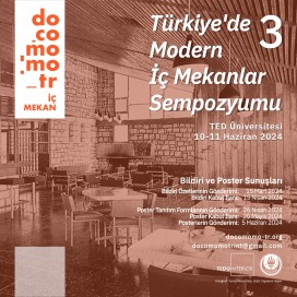 docomomo_tr İç Mekan Komitesi tarafından, TED Üniversitesi Mimarlık ve Tasarım Fakültesi İç Mimarlık ve Çevre Tasarımı Bölümü’nün ev sahipliğinde 10-11 Haziran 2024 tarihlerinde düzenlenecek olan Türkiye’de Modern İç Mekanlar Sempozyumu III, Türkiye’de modern iç mekan üzerine yürütülen güncel araştırmalar için disiplinlerarası bir paylaşım ortamı oluşturmayı hedeflemektedir. Sempozyuma bildiri sunumu ve poster sunumu olmak üzere iki ayrı katılım seçeneği bulunmaktadır.