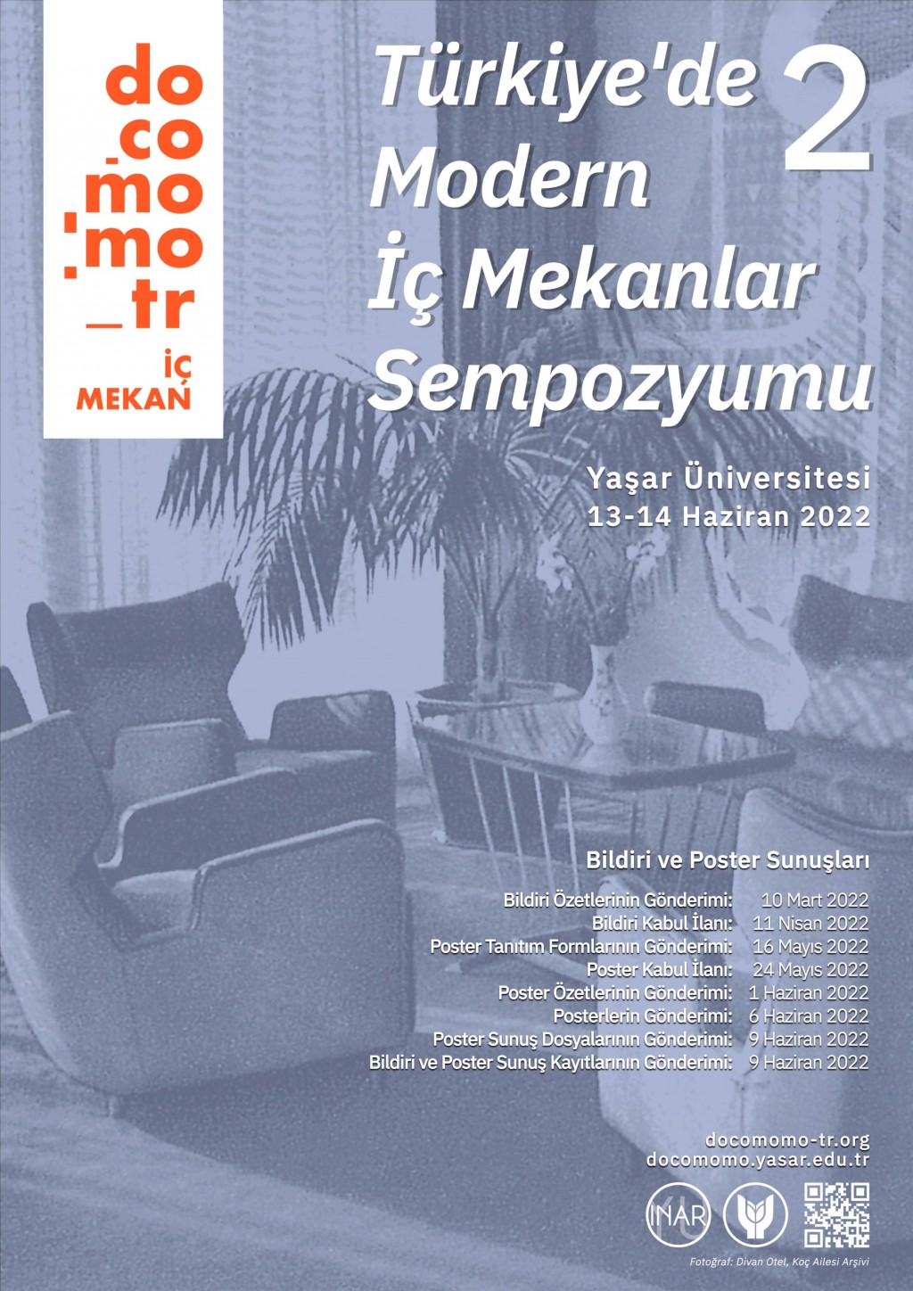 Türkiye’de Modern İç Mekanlar Sempozyumu'nun ikincisi, 13-14 Haziran 2022 tarihinde docomomo_türkiye İç Mekan Komitesi tarafından, Yaşar Üniversitesi İç Mimarlık ve Çevre Tasarımı Bölümü ev sahipliğinde düzenlenecektir.