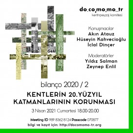 Modern mimarlık mirasına ilişkin çeşitli sorunların temellendiği durumların sorgulanacağı bilanço 2020'nin kent + peyzaj komitesinin düzenlediği ikinci etkinliği 3 Nisan 2021 tarihinde gerçekleştirilecektir.