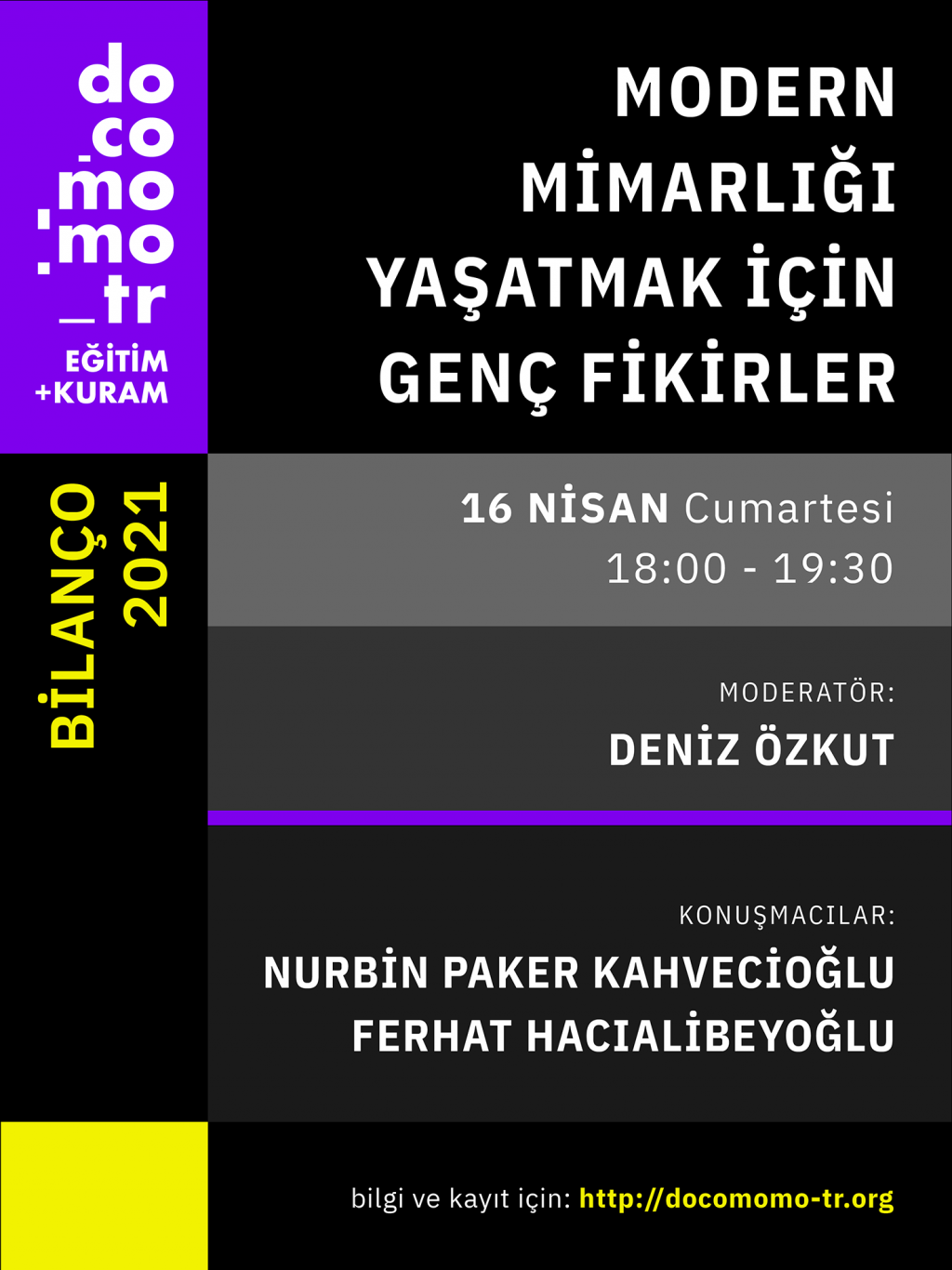 Etkinlik docomomo_türkiye YouTube hesabından canlı yayınlanacaktır.