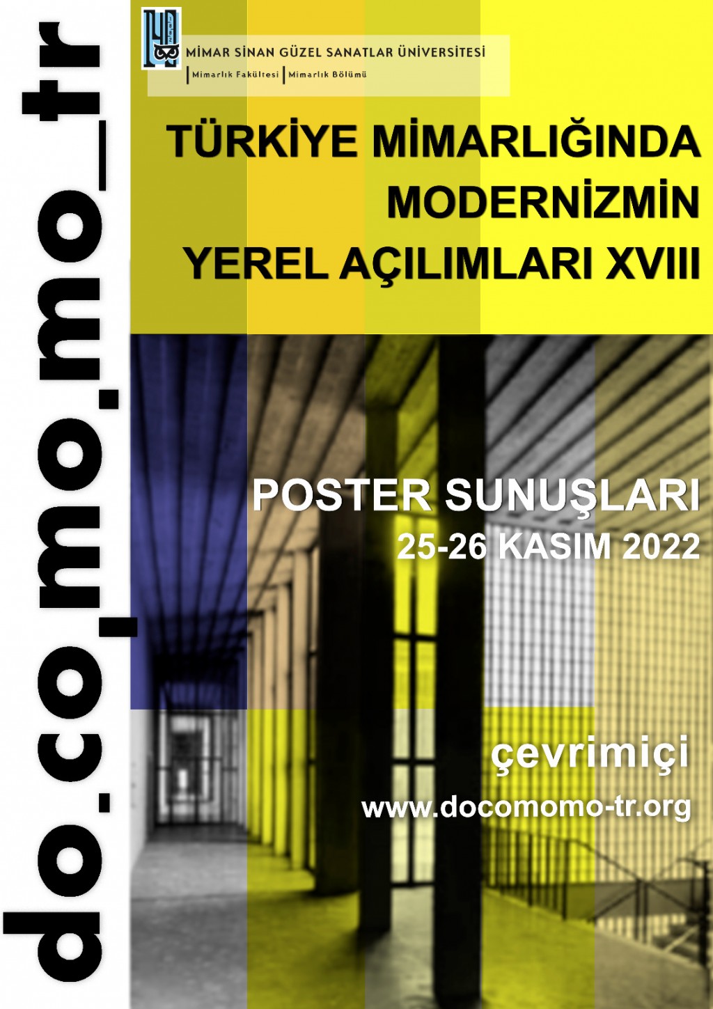 docomomo_türkiye Ulusal Çalışma Grubu, ilk kez 2004 yılında gerçekleştirilen “Türkiye Mimarlığında Modernizmin Yerel Açılımları” başlıklı Poster Sunuşları ile, var olan literatürün sınırlarını aşarak modern mimarlığın daha iyi anlaşılması ve korunması yönünde etkin rol oynayacak geniş kapsamlı ve katılımlı bir belgeleme çalışmasını başlatmayı hedeflemiştir. Her yıl farklı bir ilde ve farklı üniversitelerin ev sahipliğinde düzenlenen Poster Sunuşları’nın on sekizincisi 25-26 Kasım 2022 tarihlerinde çevrimiçi olarak Mimar Sinan Güzel Sanatlar Üniversitesi Mimarlık Fakültesi’nin desteğiyle gerçekleştirilecektir.